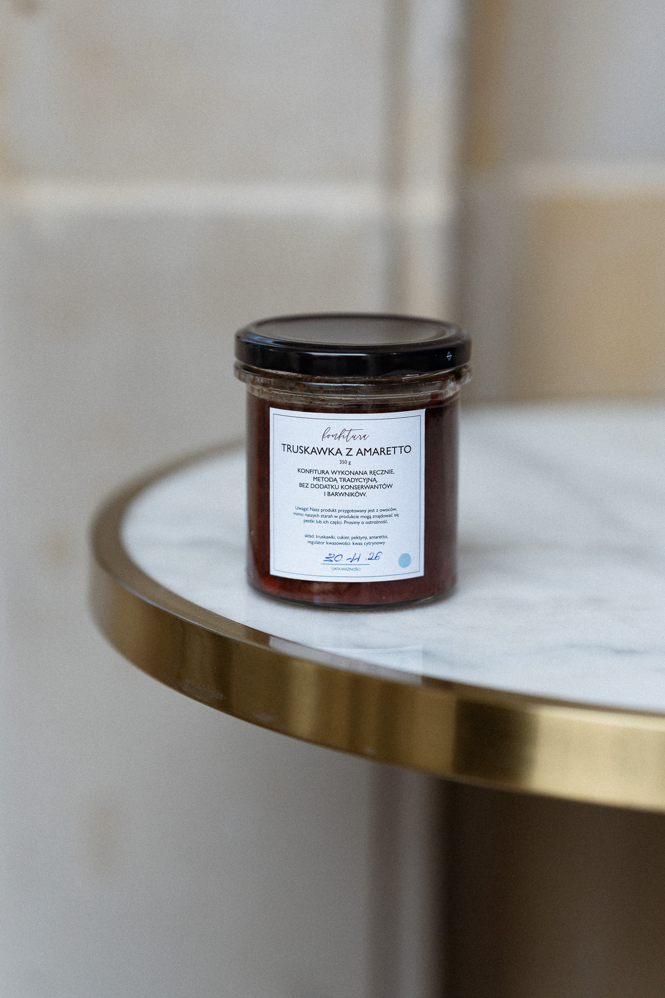 Składniki: truskawki, cukier, amaretto, pektyny, regulator kwasowości: kwas cytrynowy.